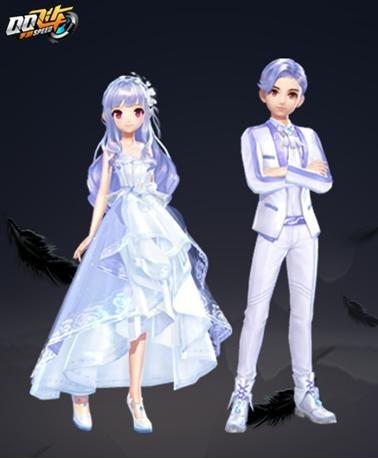QQ飞车手游(情侣)属性:亲密度加成女生白纱长裙男生白色西装圣洁